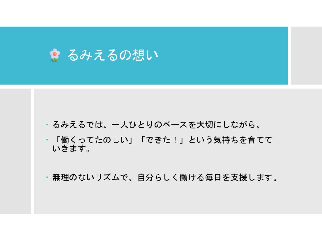 就労継続支援B型るみえる 支援プログラム