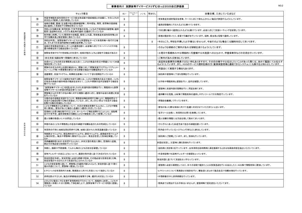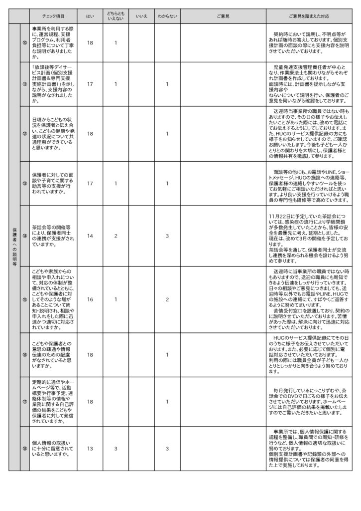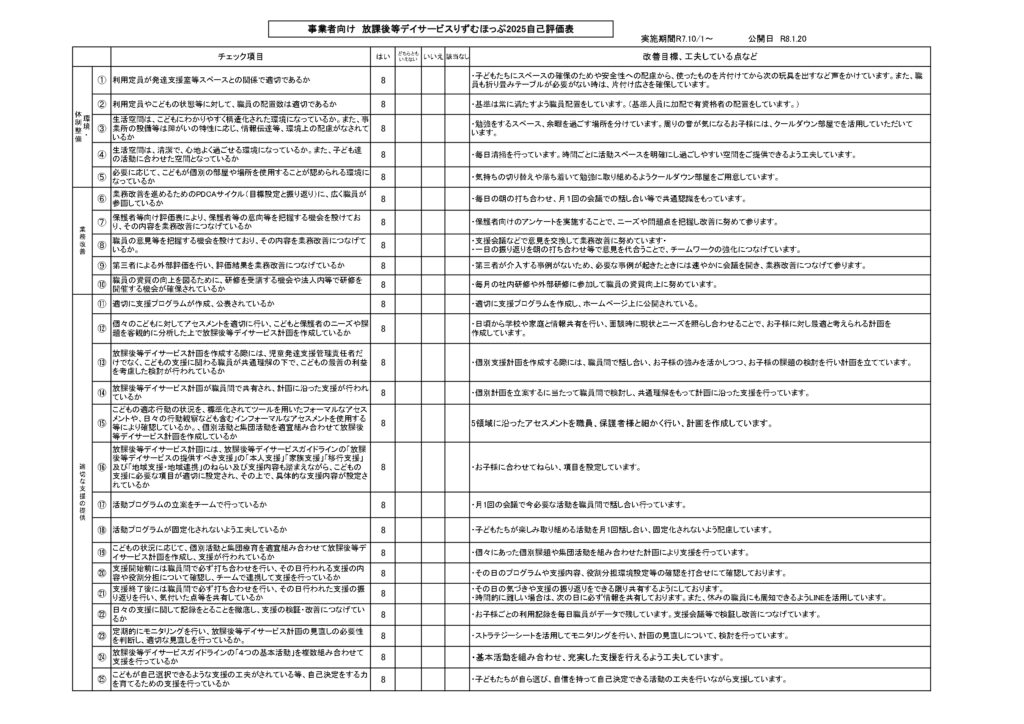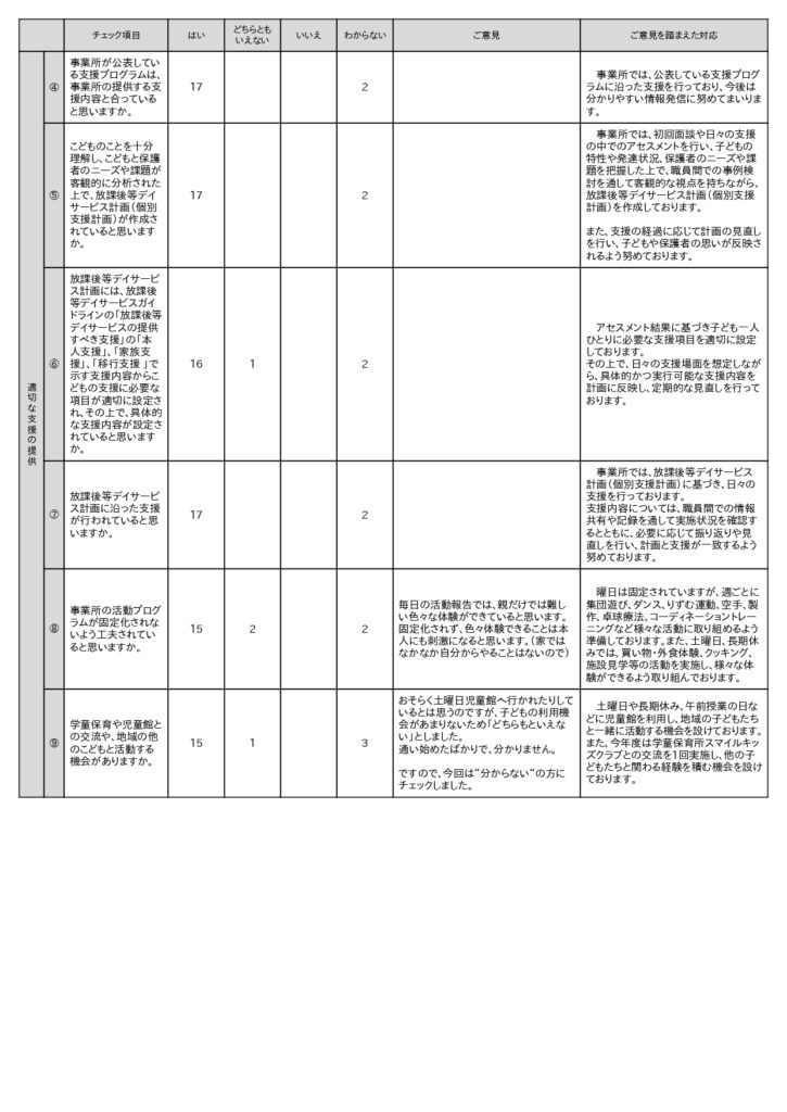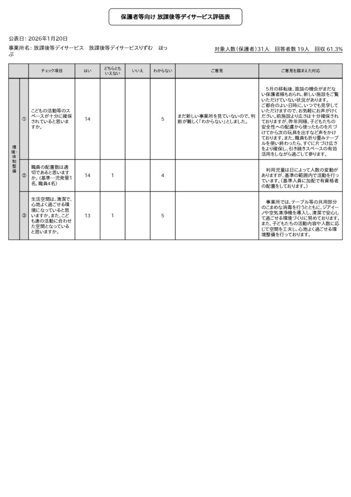 2025年度放課後等デイサービスりずむほっぷ評価表アンケート結果
